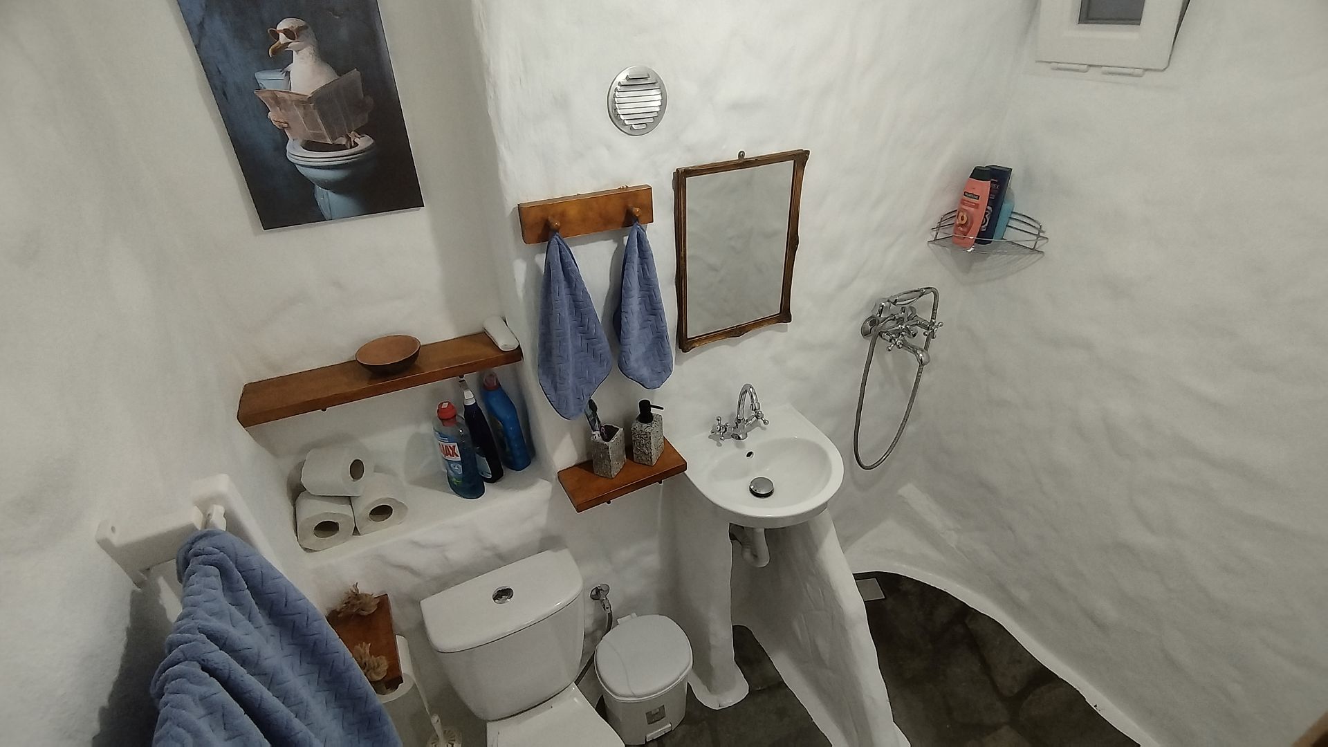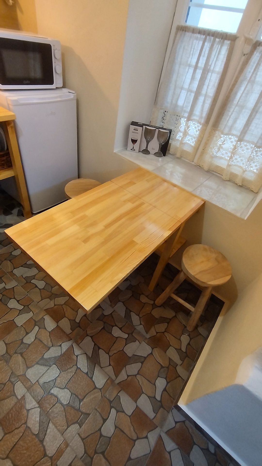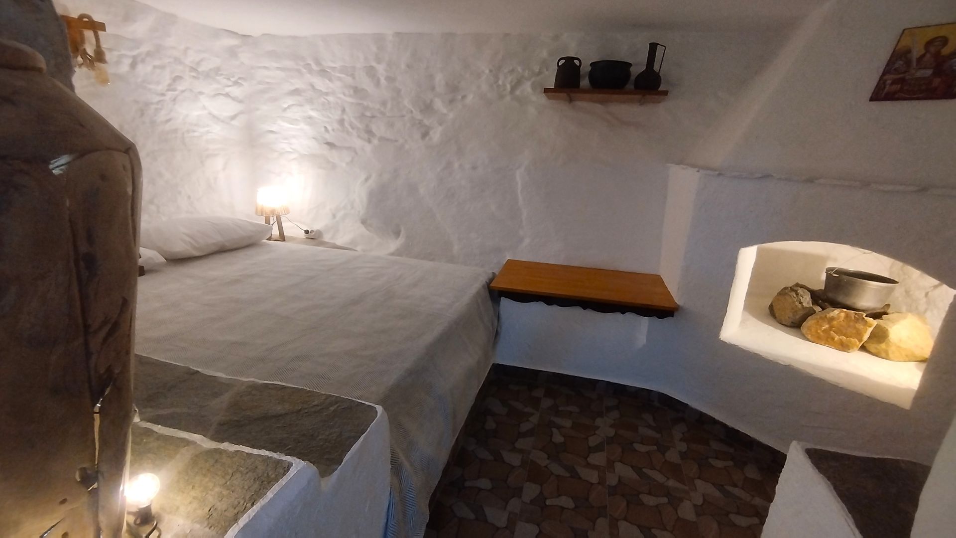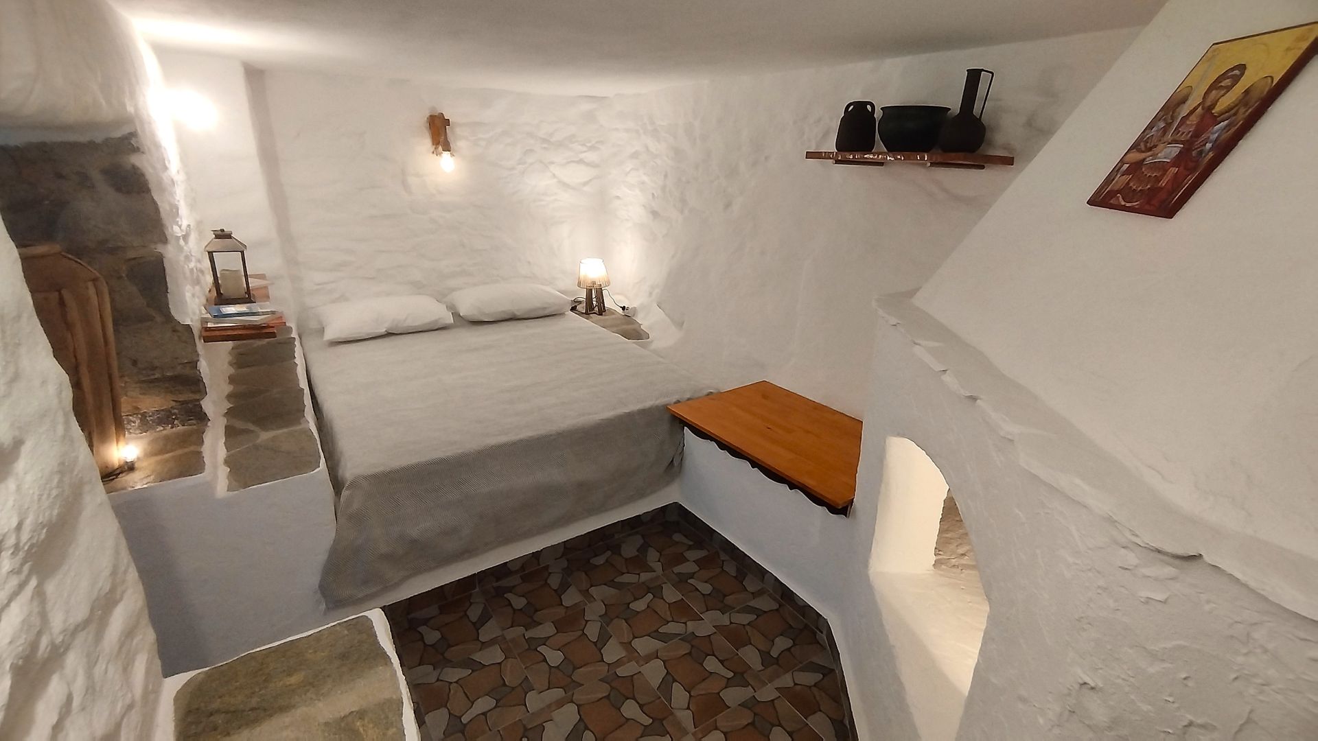 Квартира находится на первом этаже пятиэтажного дома с отдельным и удобным входом, всего в 150 метрах от пляжа, и может принять до 6 гостей. Сам дом был построен в 1924 году из натурального камня, является культурным наследием города Кавала, и находится под охраной Министерства Культуры Греции.