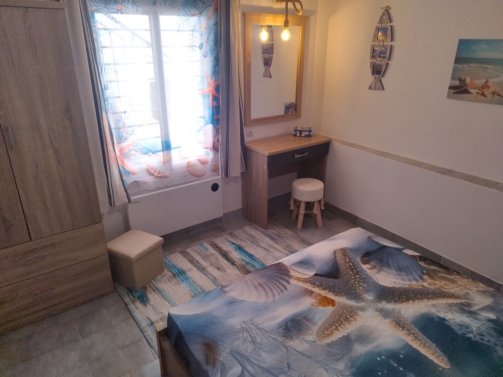 • Квартира с двумя спальнями площадью 77 м2 максимум для 6 гостей с двумя двуспальными кроватями и 1 диваном-кроватью. К услугам гостей отдельный вход, кухня с посудой, кондиционер, холодильник, стиральная машина, телевизор с плоским экраном - от 60€.